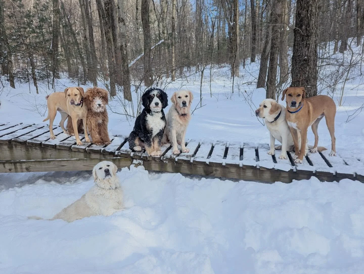 “Our yellow lab Sampson has had the benefit of spending two afternoons each week with Meghan and his other friends exploring the woods in and around Boston. As the pictures on the website will attest, the dogs are in a small group and clearly enjoy themselves. He returns home each day happy, tired, and clean. We would recommend Meghan without any hesitation whatsoever.””
